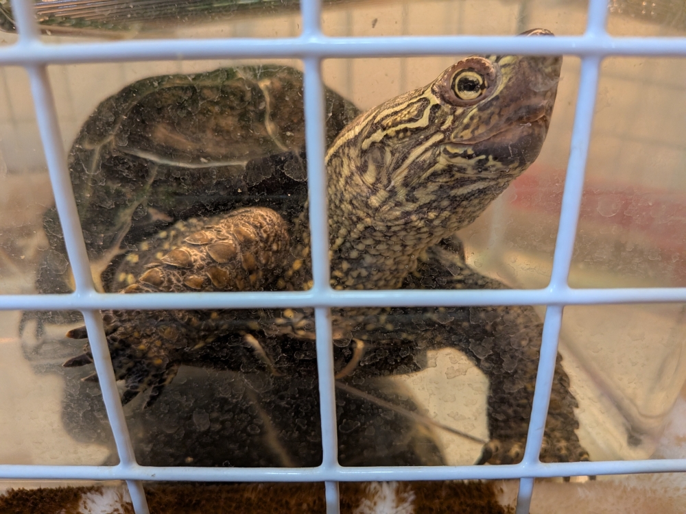 その前にペレットをいつもの量食べていましたので、バナナは少し出しましたが、その食いつきっぷりはひと月前のガメ子ちゃんのよう! 私の手から直接、食べてくれたのでした。